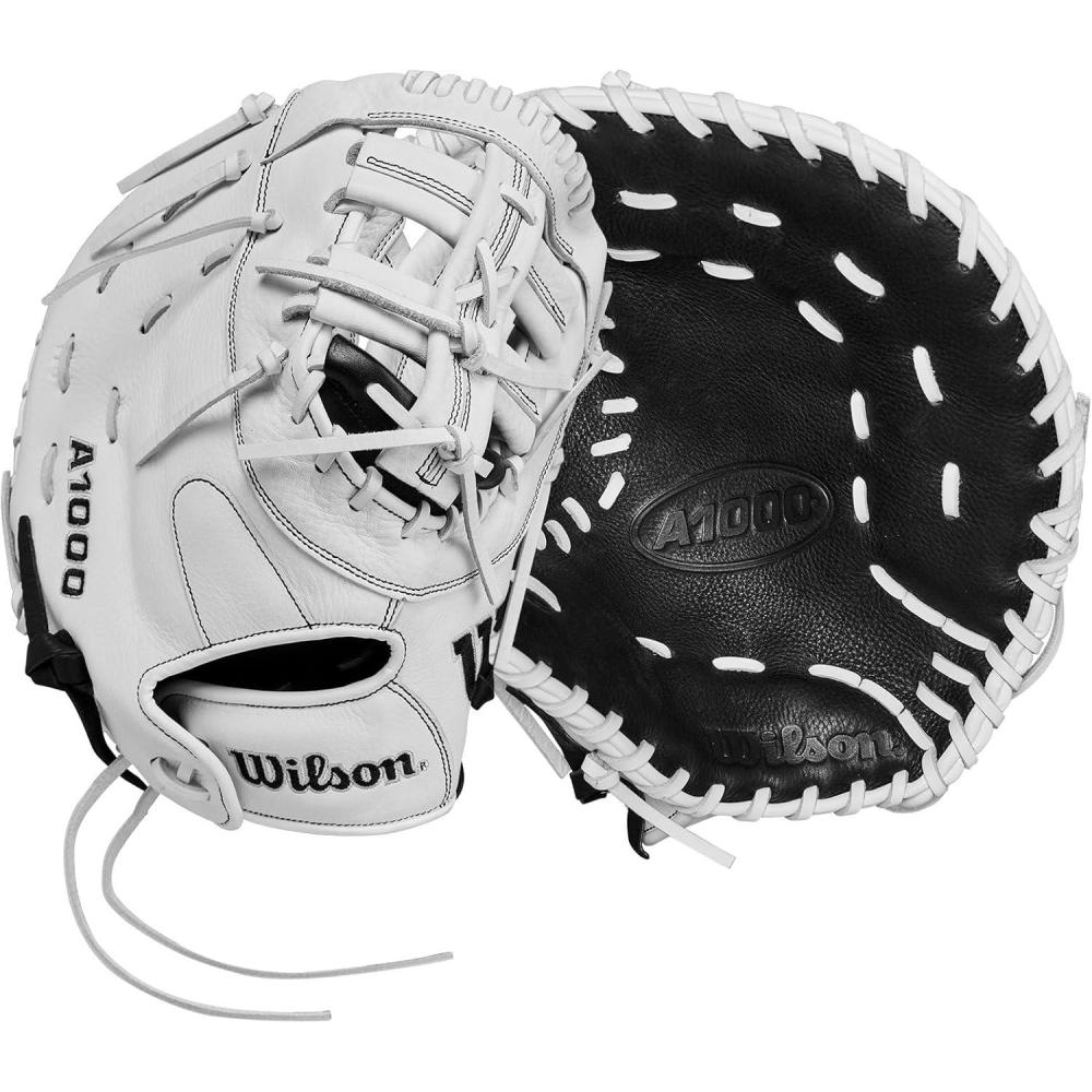 WILSON 2024 A1000 1620 12.5” Fastpitch Softball First Base Mitt – Black/White/Silver(Right Hand Throw)