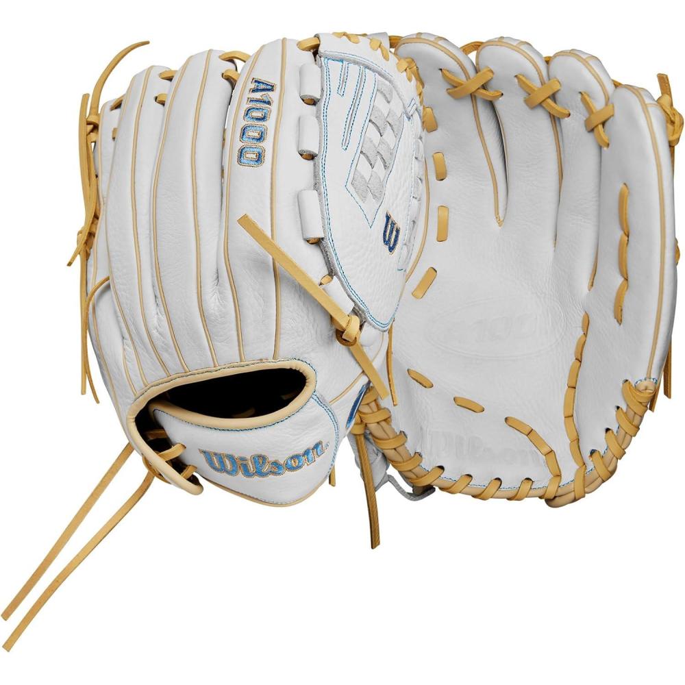 WILSON 2024 A1000 Outfield Fastpitch Softball Gloves – 12.5″(White/Blue/Blonde)
