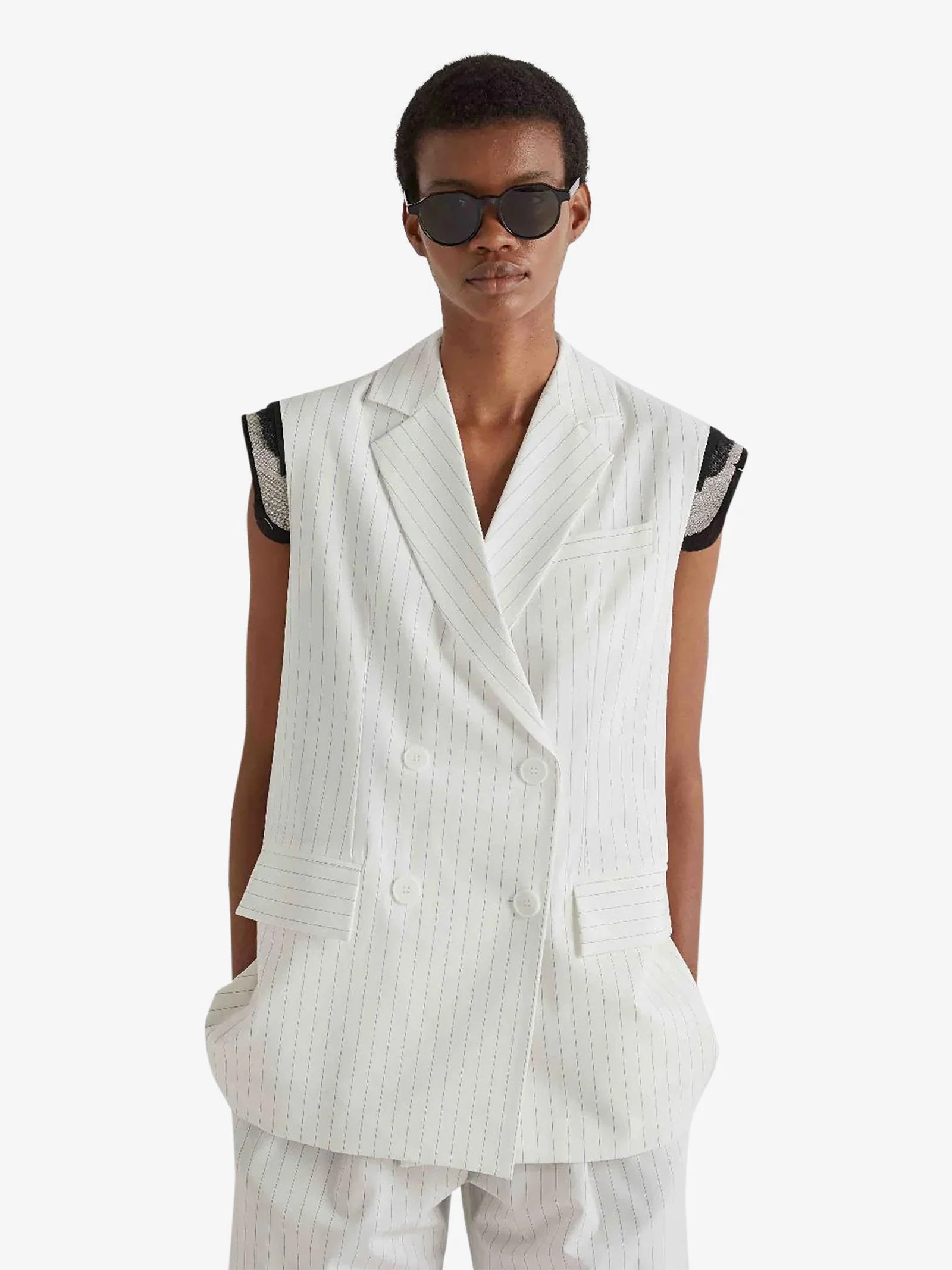 gilet gessato sul retro donna bianco