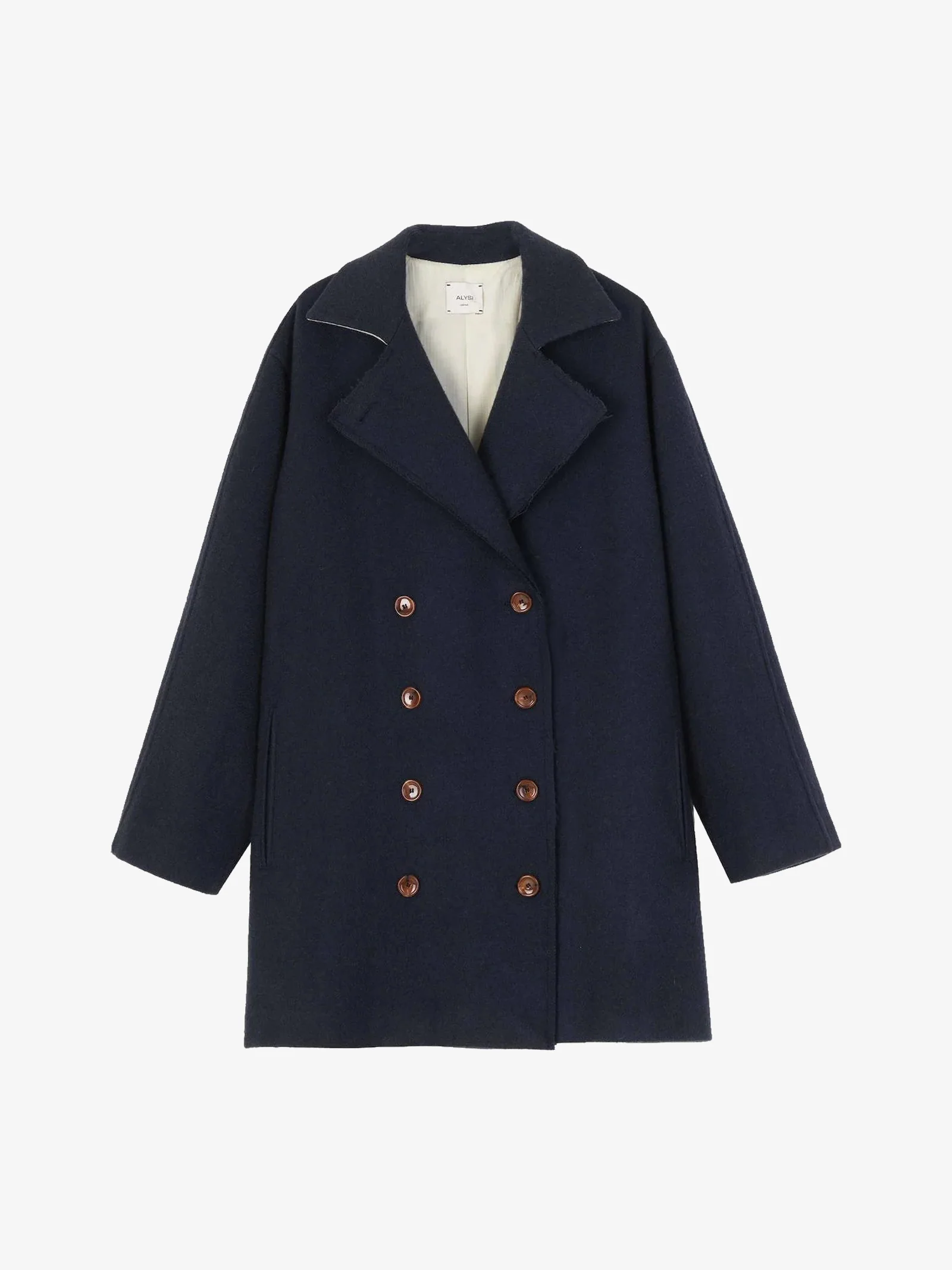 Cappotto caban doppiopetto 154916A4021 donna lana blu